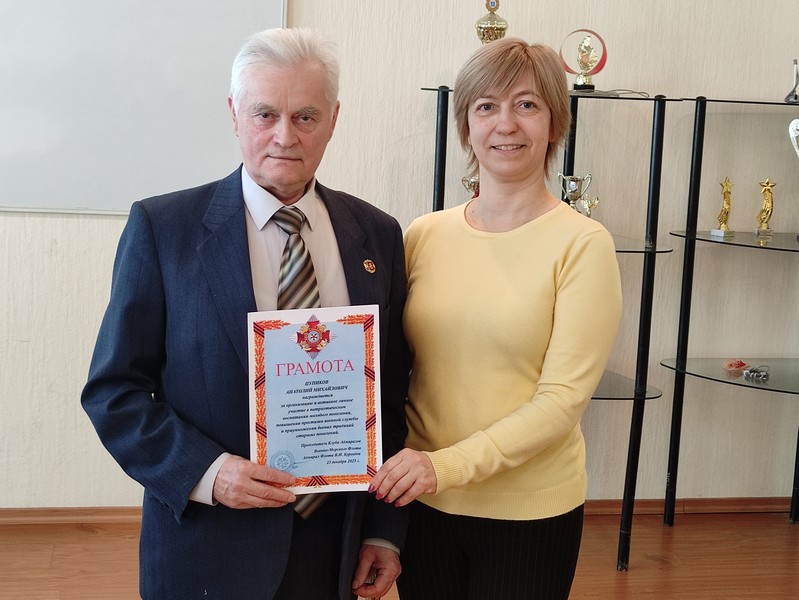 Награждение Цупикова А.М. грамотой за патриотическое воспитание молодежи.